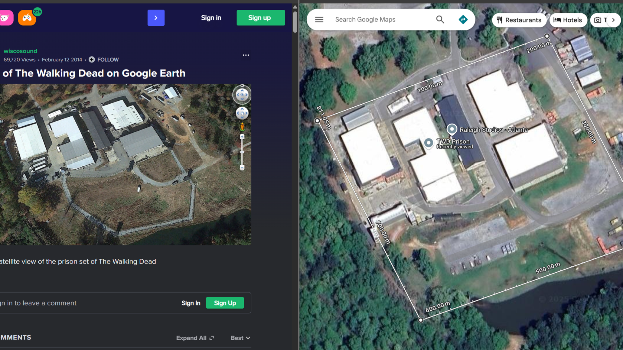 Mapped it to Raleigh Studios via Google Earth.